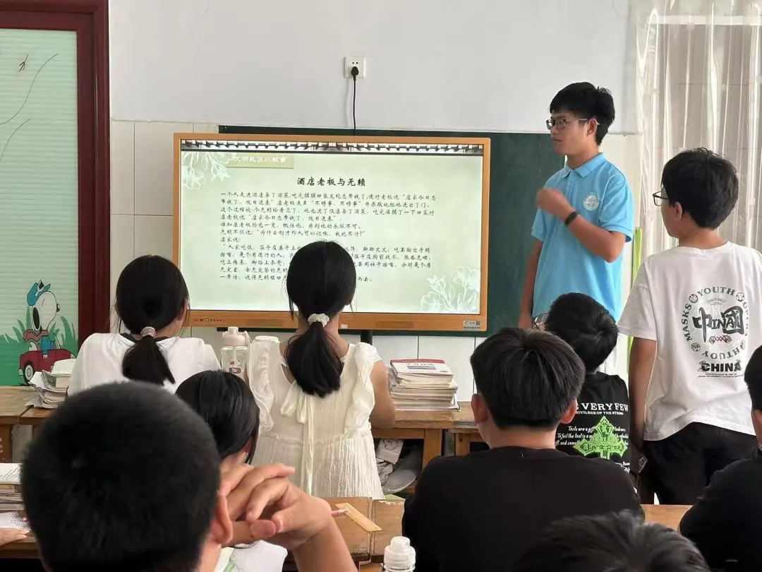 “星火青春,自强不息”志愿服务团队前往朱庙村汇英学堂,举办了一场以“文明礼仪”为主题的公开课。