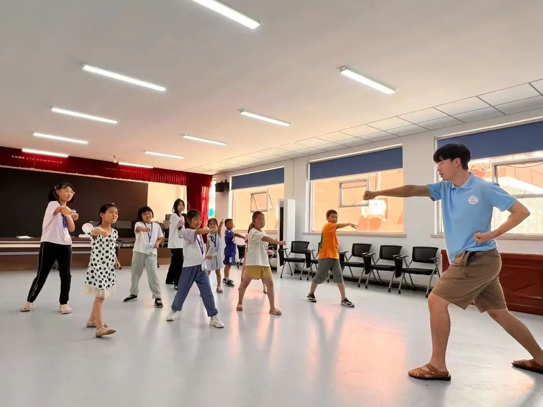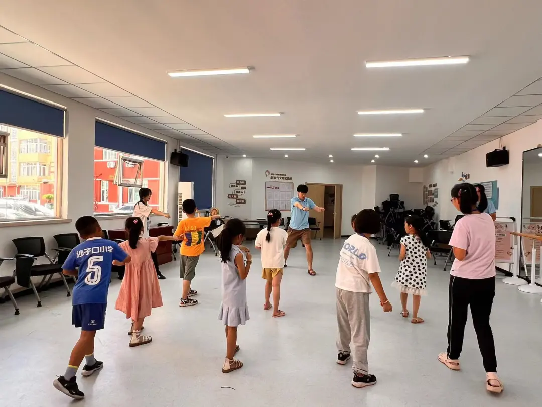 赴青岛市崂山区听海社区“星星之火”助学实践团组织开展了运动舞蹈、基础防身术等多项趣味课程。