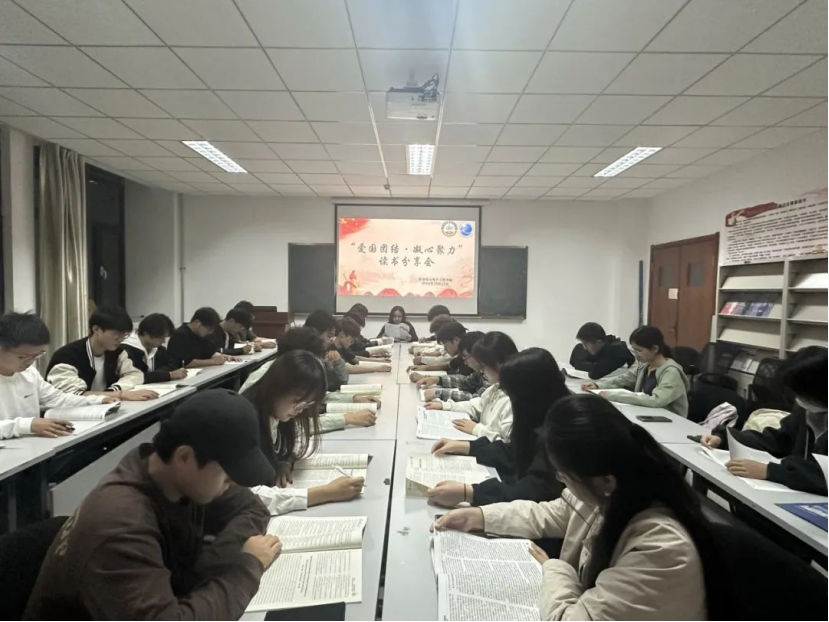 为庆祝中华人民共和国成立七十五周年,引导大学生牢固树立共同体理念,激发学生的爱国热情,凝聚奋进力量,10月17日晚上,自动化与电子工程学院于学院楼406举办了“爱国团结,凝心聚力”主题读书分享会活动。各年级学生代表参与活动。