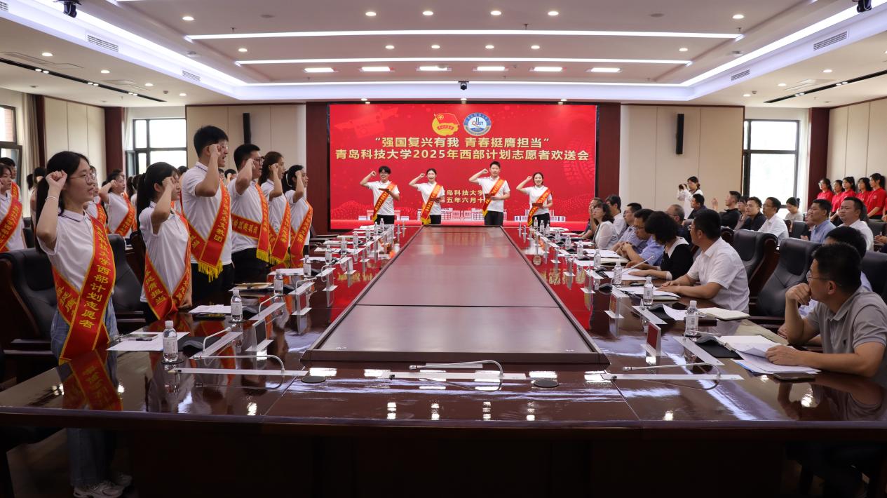 6月18日,学校“强国复兴有我 青春挺膺担当”2025年西部计划志愿者欢送会在崂山校区赛轮会议室举行,学院党委副书记兼副院长刘名森、团委书记雷静参加会议。会后,学院党委书记李卉与志愿者交流。电气212班朱宏哲、中法211班王津棣、控制工程222班徐晓瑞三位学子入选。