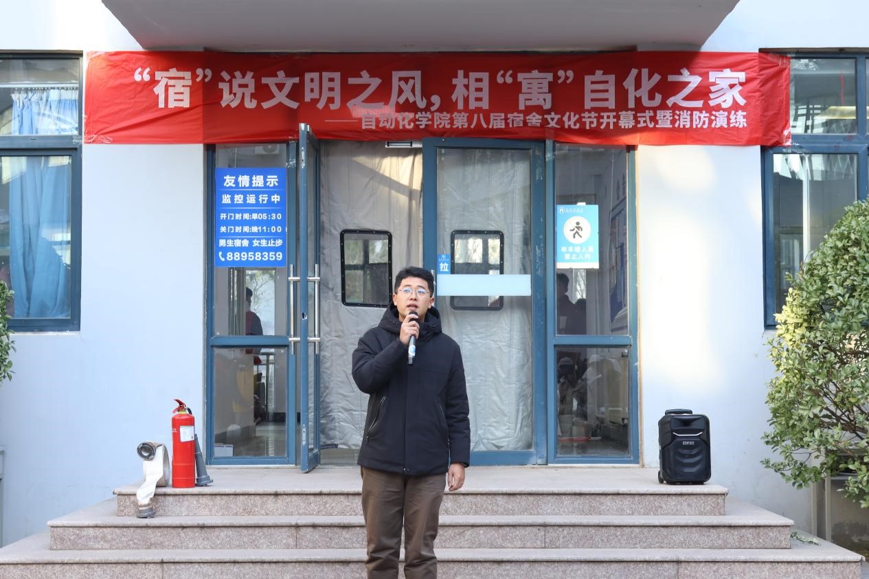 为持续深化宿舍文化建设,营造“安全、文明、和谐、有序”的宿舍生活氛围,提升学生团队协作意识与自我管理能力,11月18日下午,自动化与电子工程学院“宿”说文明之风,相“寓”自化之家第八届宿舍文化节开幕式暨消防演练在北七宿舍楼院内顺利举行。学校保卫处消防科赵淑东、学院学工办副主任兼团委副书记张郁浩、各年级辅导员及25级全体学生参与此次活动。
