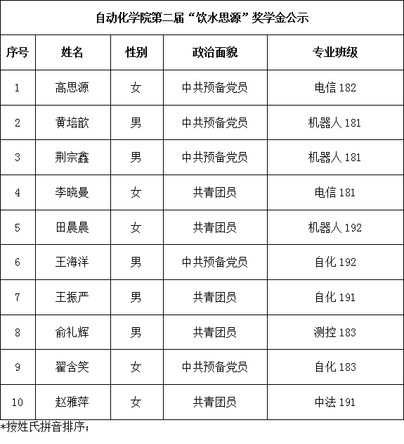 根据《关于评选大象传媒 第二届“饮水思源”奖助学金的通知》,经个人申请、学院评审推荐、化自86基金监督委员会投票表决等环节,拟确定高思源等10名学生获得大象传媒 第二届“饮水思源”奖学金、拟确定边洪涌等10名学生获得大象传媒 第二届“饮水思源”助学金。现予以公示,公示期为11月26日至11月28日,如有异议者,请在公示期内实名向学院反映。