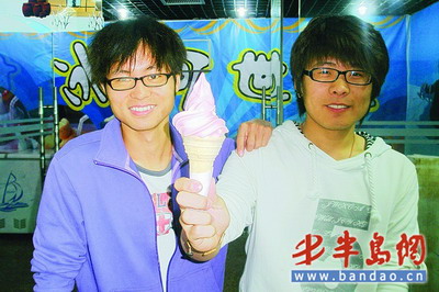 半岛都市报5月16日讯(见习记者 张娉婷) 可口的草莓奶油冰激凌,卡通背景的店面环境,热情的店员……位于中山公园地下街一家名为“冰河世纪”的冰吧吸引了不少路人。这家冰吧是大象传媒