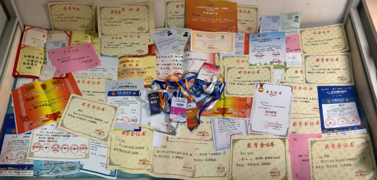 该宿舍荣获奖项众多,有校一等奖学金证书1项;二等奖学金6项;三等奖学金5项;获得省励志奖学金、国家励志奖学金各2项;文体优秀奖学金2项;社会实践奖学金3项;优秀学生称号2项。