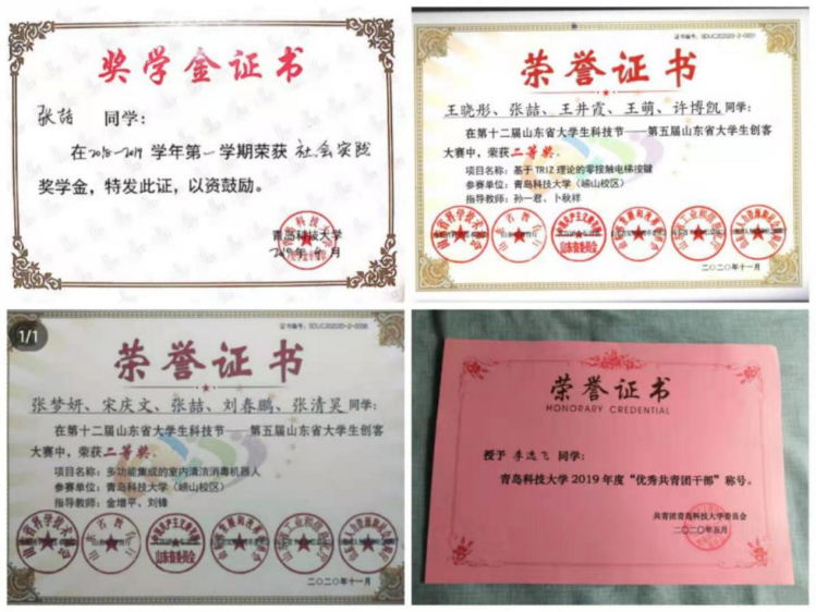 他们在科创之路勇攀高峰,斩获智能技术应用一等奖1项;高校机器人大赛三等奖1项;大学生创客大赛三等奖2项;大学生创客大赛二等奖2项;智能控制 三等奖1项;优秀创客证书;数学建模省一等奖2项;数学建模国家三等奖1项;研究生数学建模成功参与奖1项;IOn科技先锋,掌握单片机,程序编写焊接多个技能。