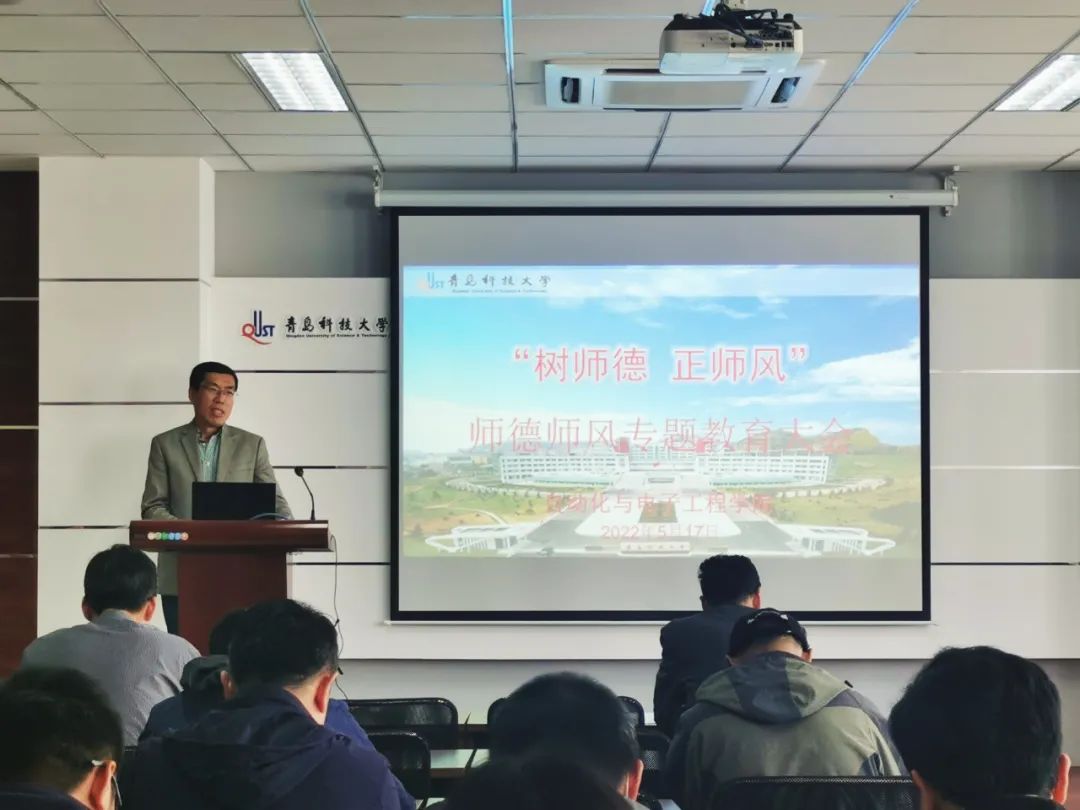 于学院楼410会议室召开“树师德 正师风”师德师风专题教育大会,学院党政领导、全体教职工参加。