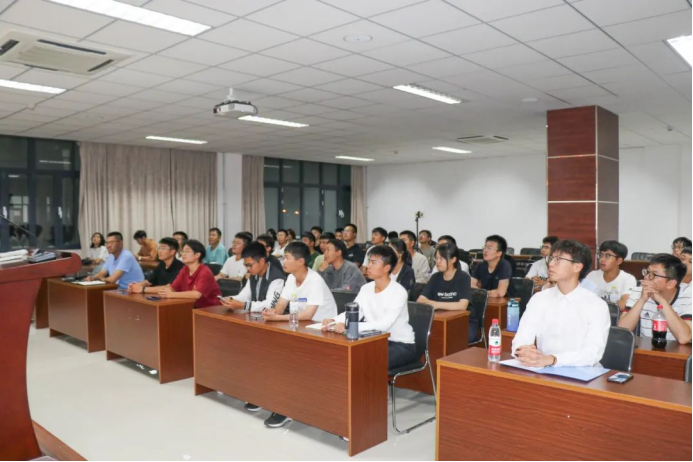 最后,机器人协会负责人、机器人211班户文印通过介绍机器人协会向新生们展示了科研的魅力。他从协会背景、成果展示、社团氛围三方面进行分享,提到协会旨在培养大学生自主创新能力,对科技探索的兴趣和学习潜力,极大的调动了同学们对科学的学习热情。