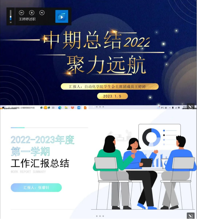 会议伊始,主席团成员王婷婷、张睿钊针对2022-2023学年第一学期学生会的主要工作进行总结汇报,表示过往成绩的取得是老师与同学们共同努力的结果,在接下来的工作中必将踔厉奋发,进一步加强学习、借鉴经验,改进工作方式方法,为学院以及学生会的发展贡献一份热情,增添一份光热。