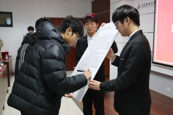 诚信如笔,应考似墨。立足学期末关键节点,结合学风建设月活动开展,学院进一步加强对学生的诚信教育,严肃考风考纪,各年级学生代表签署诚信考试承诺书,引导学生争做有德行、守契约、讲诚信的科大人。