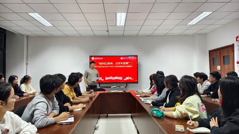 为深入学习贯彻习近平总书记关于青年工作重要思想,深刻领悟总书记给青年群体回信中的殷切嘱托,引导青年学子筑牢理想根基、明晰奋斗方向,10月21日,自动化与电子工程学院学生会以“研回信精神,启青年思辨”为主题在学院楼410举办专题学习活动,学院大三年级辅导员刘志飞担任主讲人,学院学生会骨干到场参与学习。