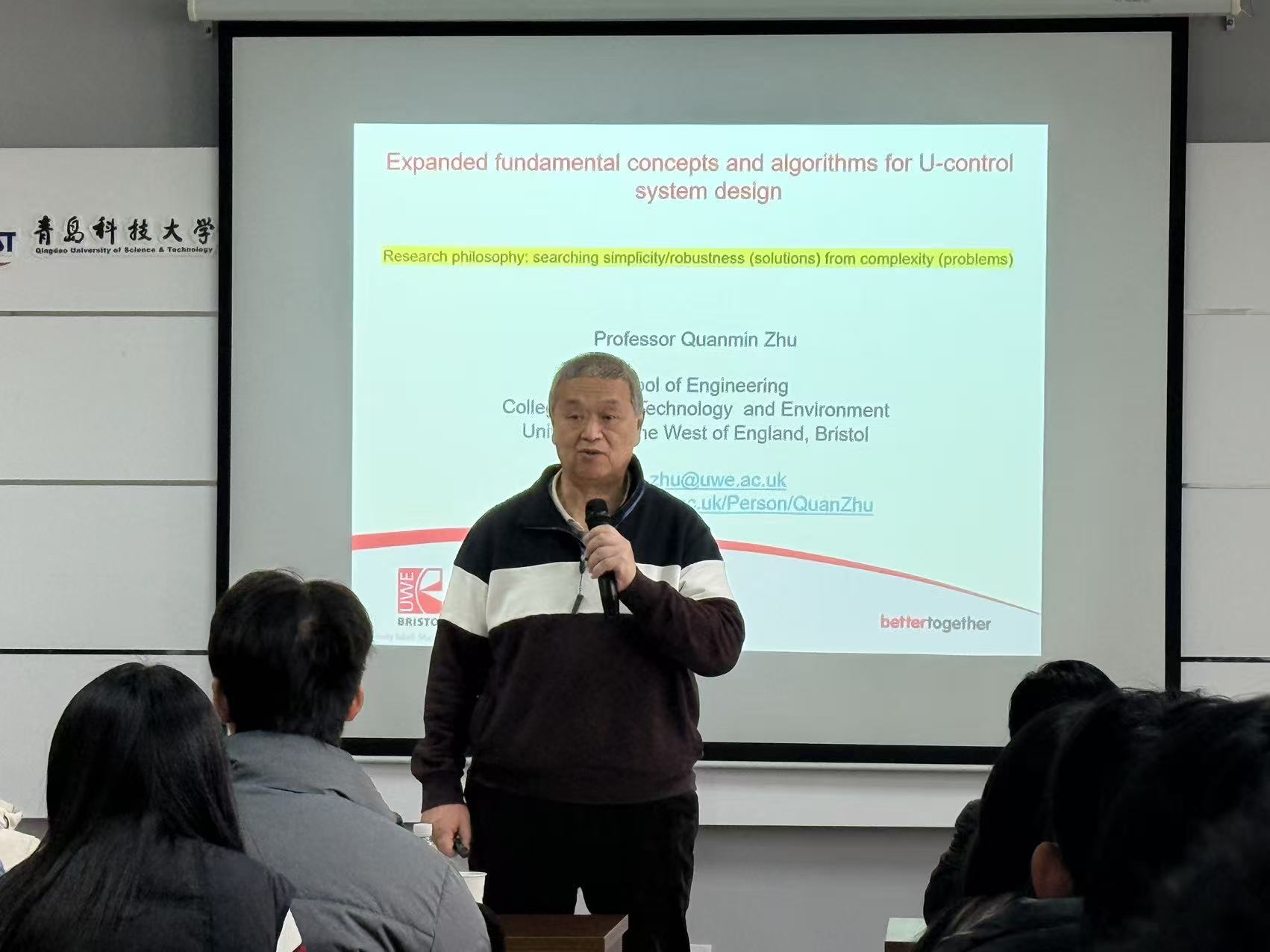报告中,朱教授先进行了亲和有力的开场互动,随后系统阐述了U-control的基本理念及其在控制系统设计中的扩展概念与算法。他深入解析了该框架如何实现“模型独立”的控制设计,从而显著简化非线性系统的控制流程,提升设计效率与系统性能。朱教授还结合自身研究经历,分享了在非线性建模、智能控制及中英科研合作方面的经验与思考。报告结束后,老师同学们积极同朱教授进行交流,现场氛围热烈而浓厚,充分展现了学术交流的碰撞与活力.